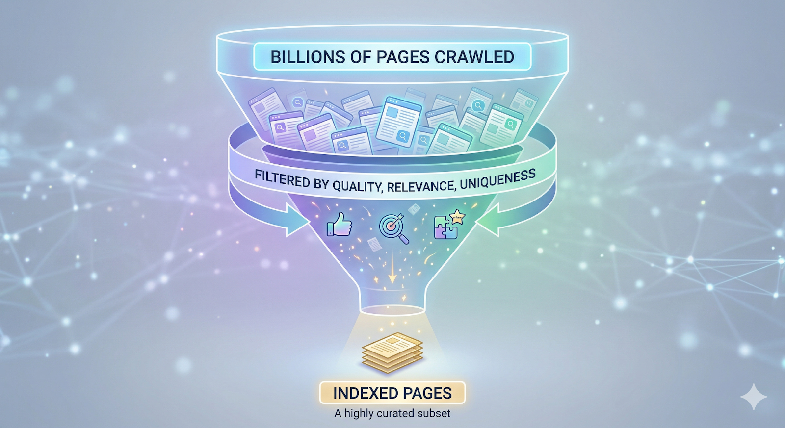 Think of the index as Google's memory. Crawling is seeing something. Indexing is deciding it's worth remembering. And just like human memory, Google is selective about what it keeps.